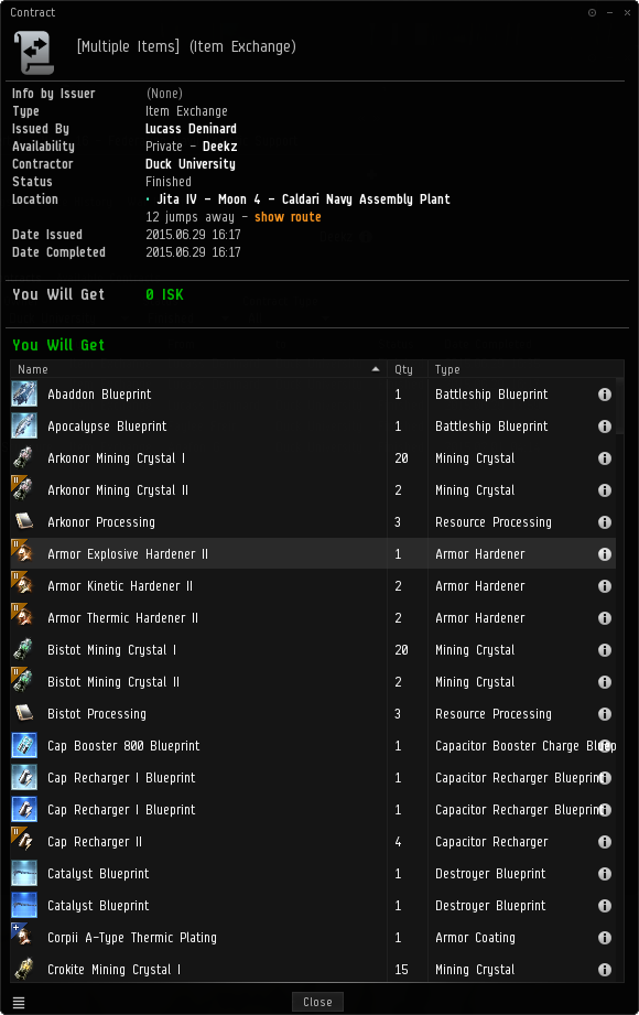 I know that I can't go straight for the throat, because in this case it would take a little prep work. I needed to wait until I knew he was going to commit before I started talking about ISK and what it takes to move out there. Luckily it didn't take long and I was able to tell him about how Deekz and I have already started buying all we needed for the big move. I proceed to talk between the three of us and casually bring up that I've put in roughly 11b and Deekz has done 13b. He seems shocked that we would commit such a large sum of ISK to the project, and is still completely on board when I tell him I'm going to send him a list of some of the remaining necessary items we need before we start moving. I have no idea how much he has in either ISK or assets, but I figure he will let us know when he runs out or is at his limit. We go about 24 hours in which I pretty much make myself sick with nervousness and anticipation. Would he really send us everything off this list? My over-thinking-everything brain starts racing as the possibility of him not being that stupid, but I'm quickly proven wrong.